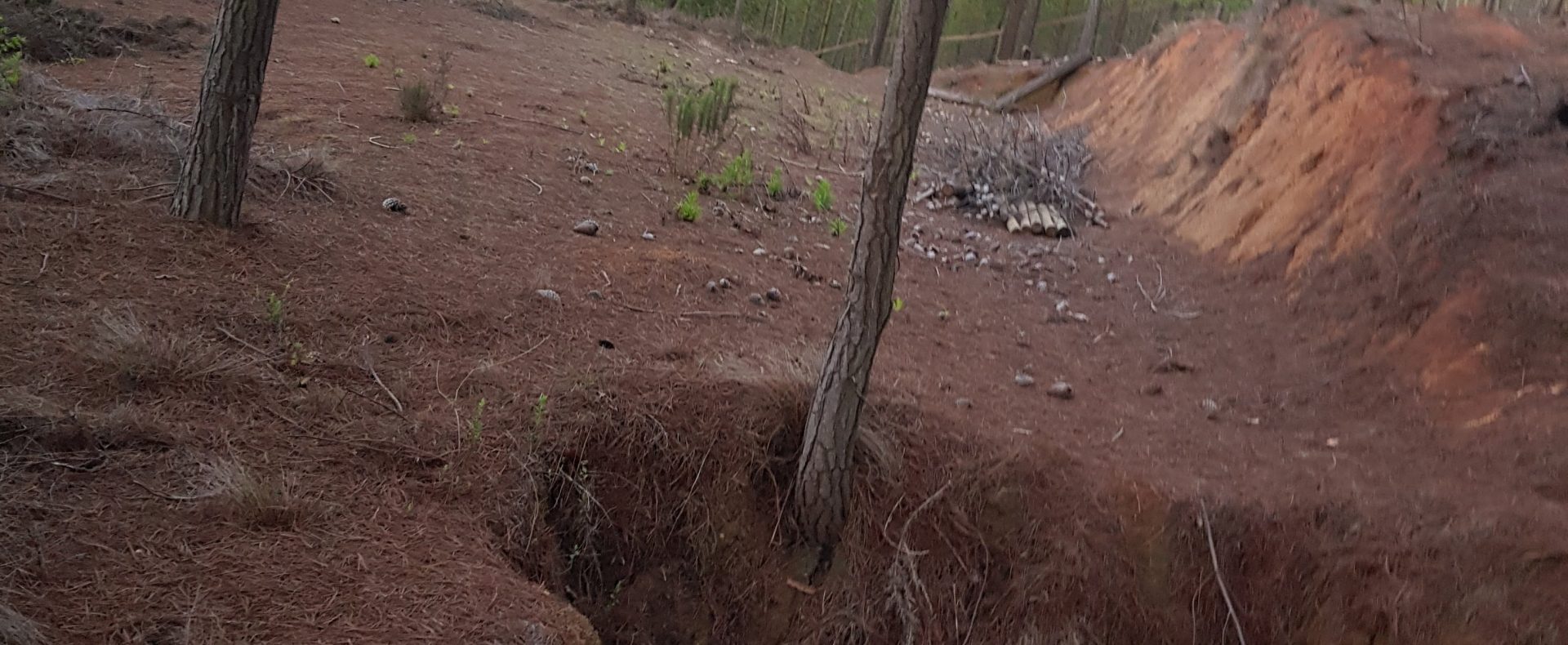 Con los movimientos de tierra realizados para construir casa, piscina, acequia y camino interior.